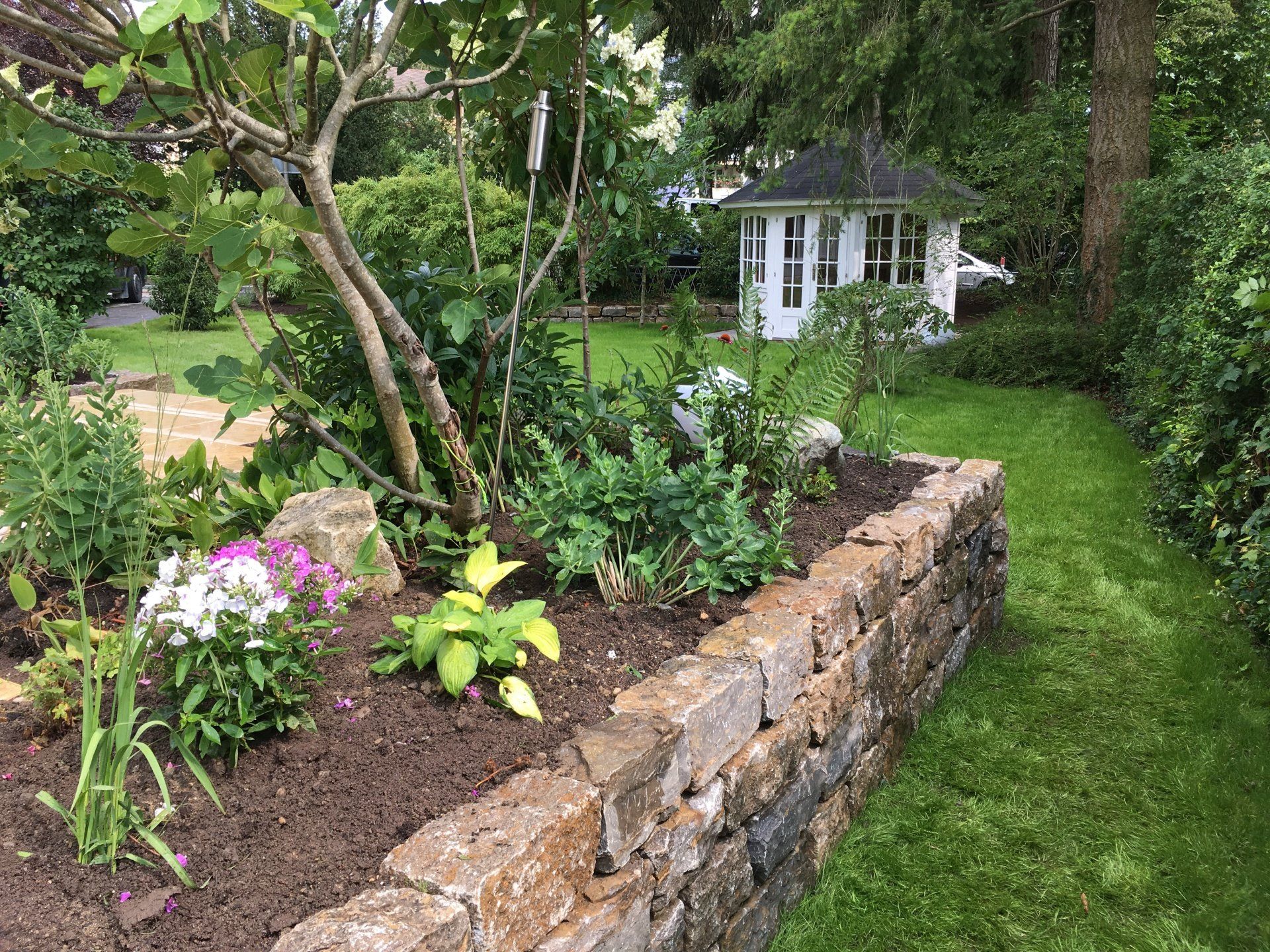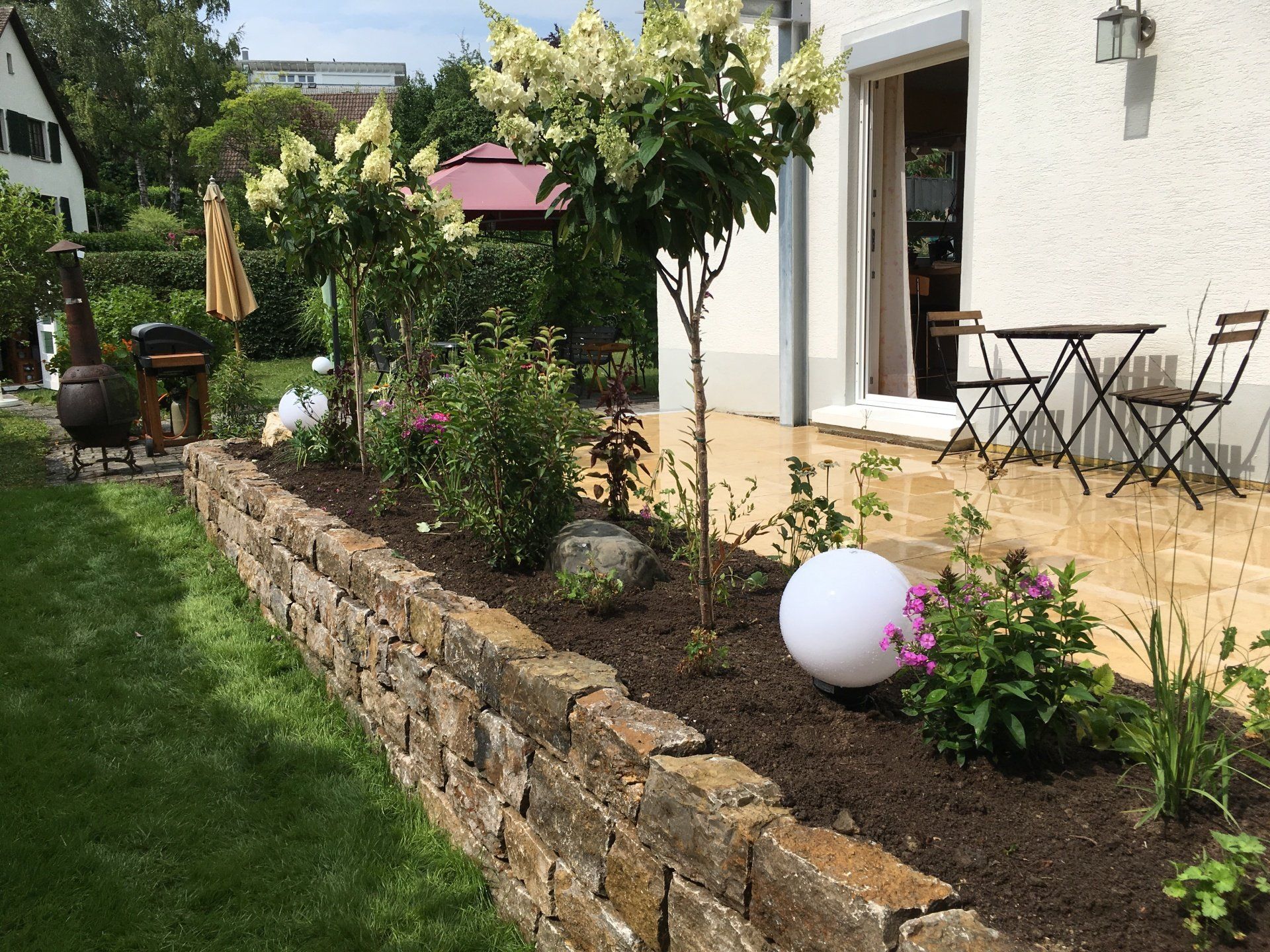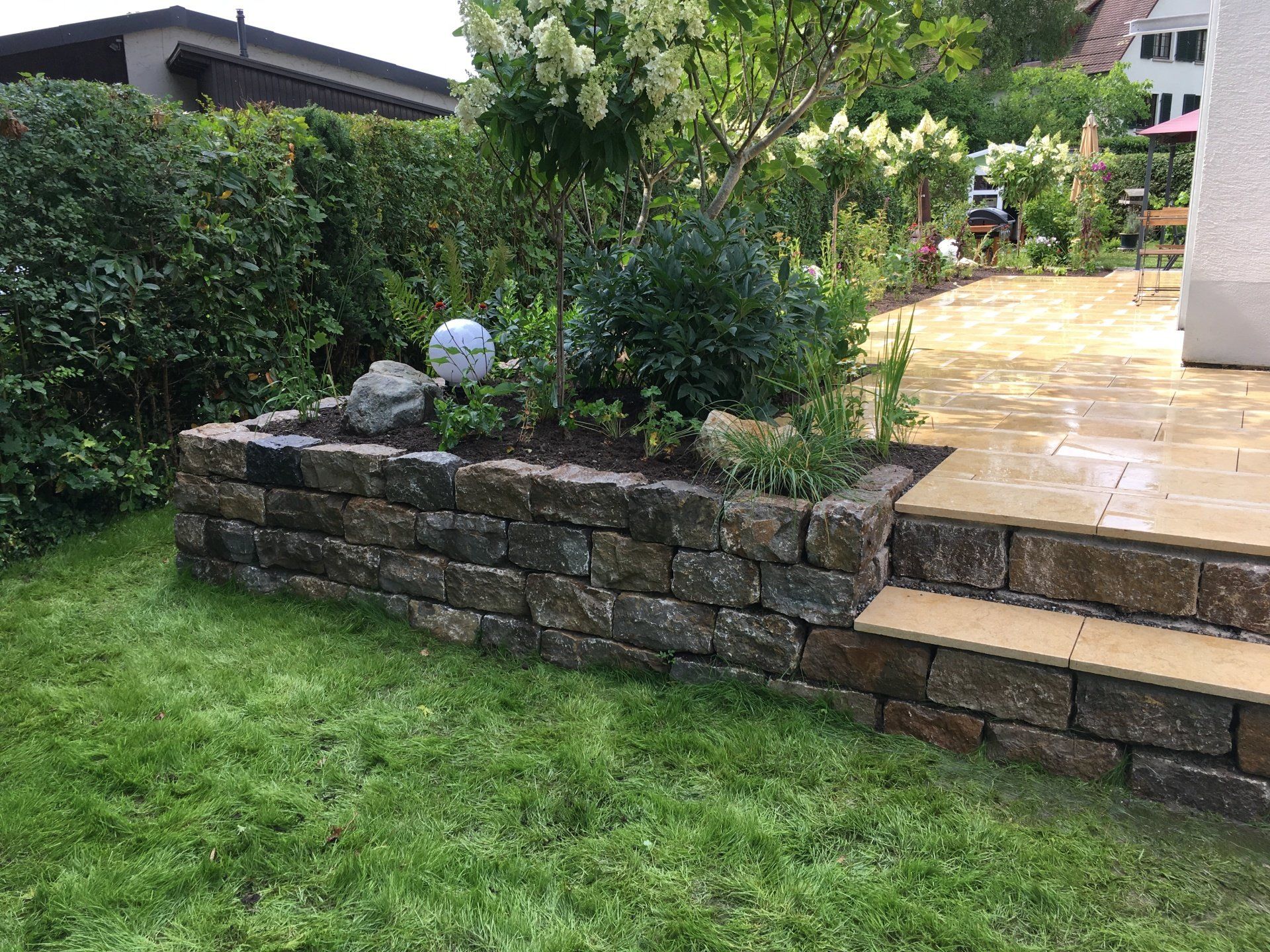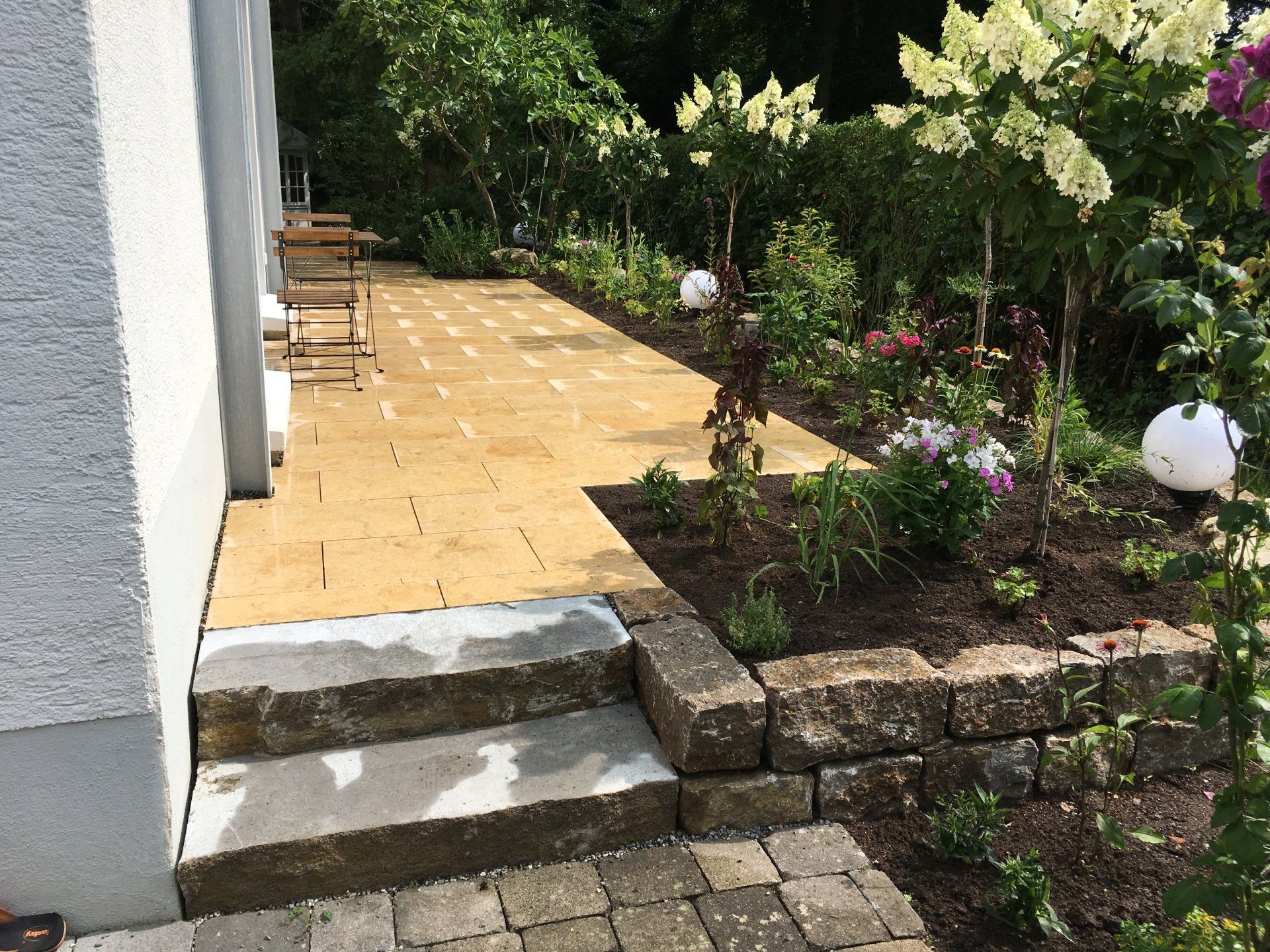 Referenz: Terrasse, Treppen, Mauern, Blumen ...